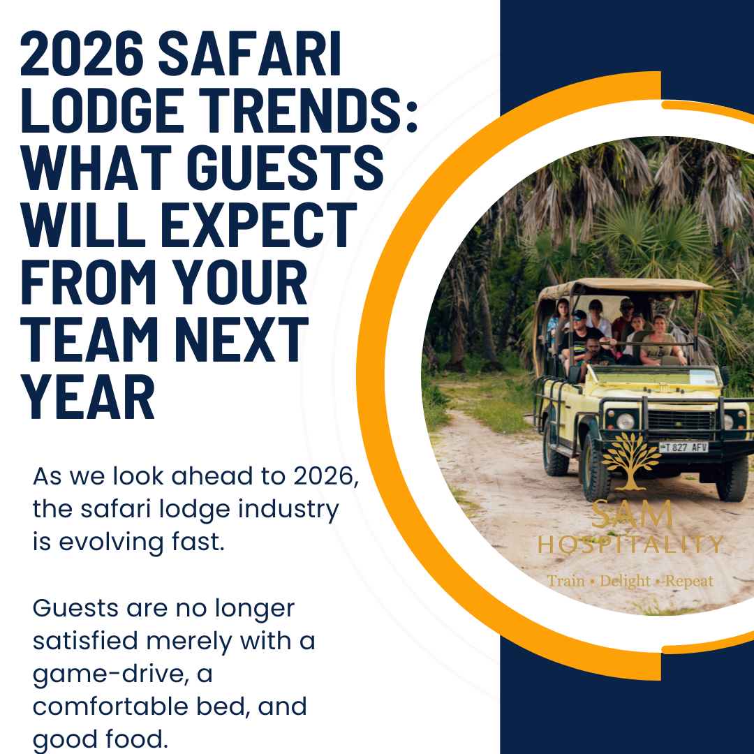 In this blog I’ll outline six key trends your team must be ready for in 2026, and then share how you can get ahead by booking staff training now. Because yes — the training bookings are now open for 2026. Secure your slot at https://www.hospitalitycourses.co.za/safari-lodge-staff-training-2026